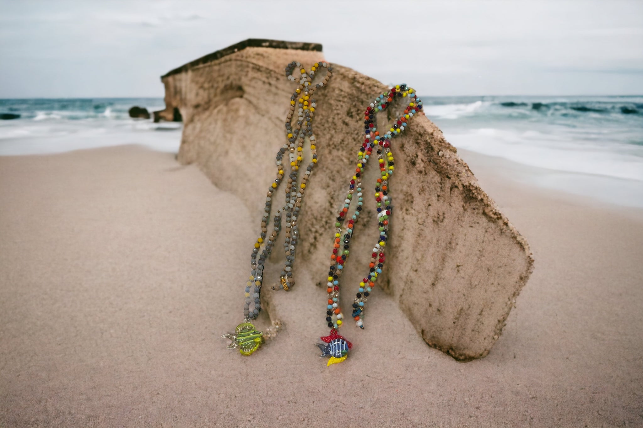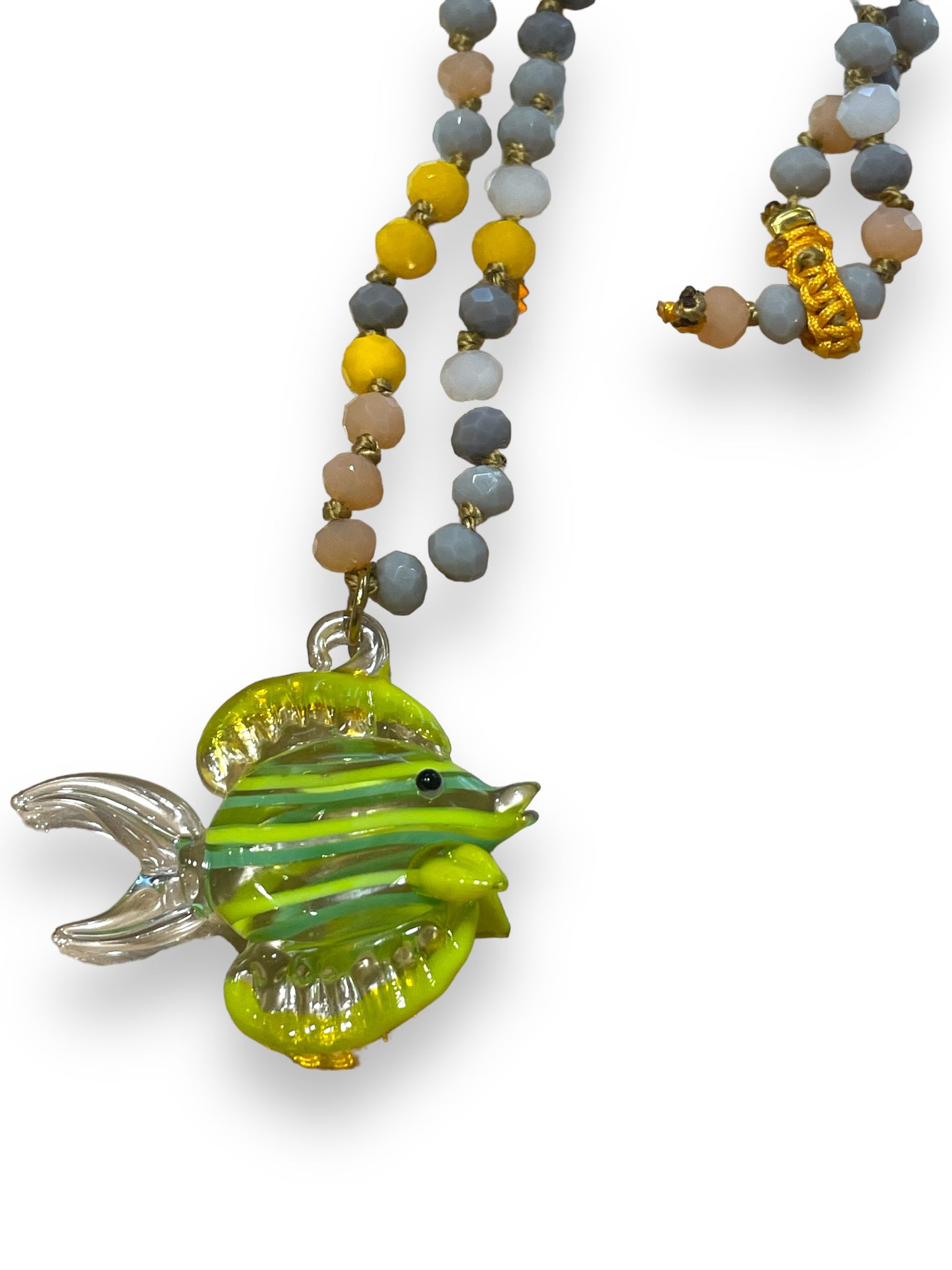 Collar largo de 1,5m para ser Multi posición. Colgante en cristal de murano en forma de pez.