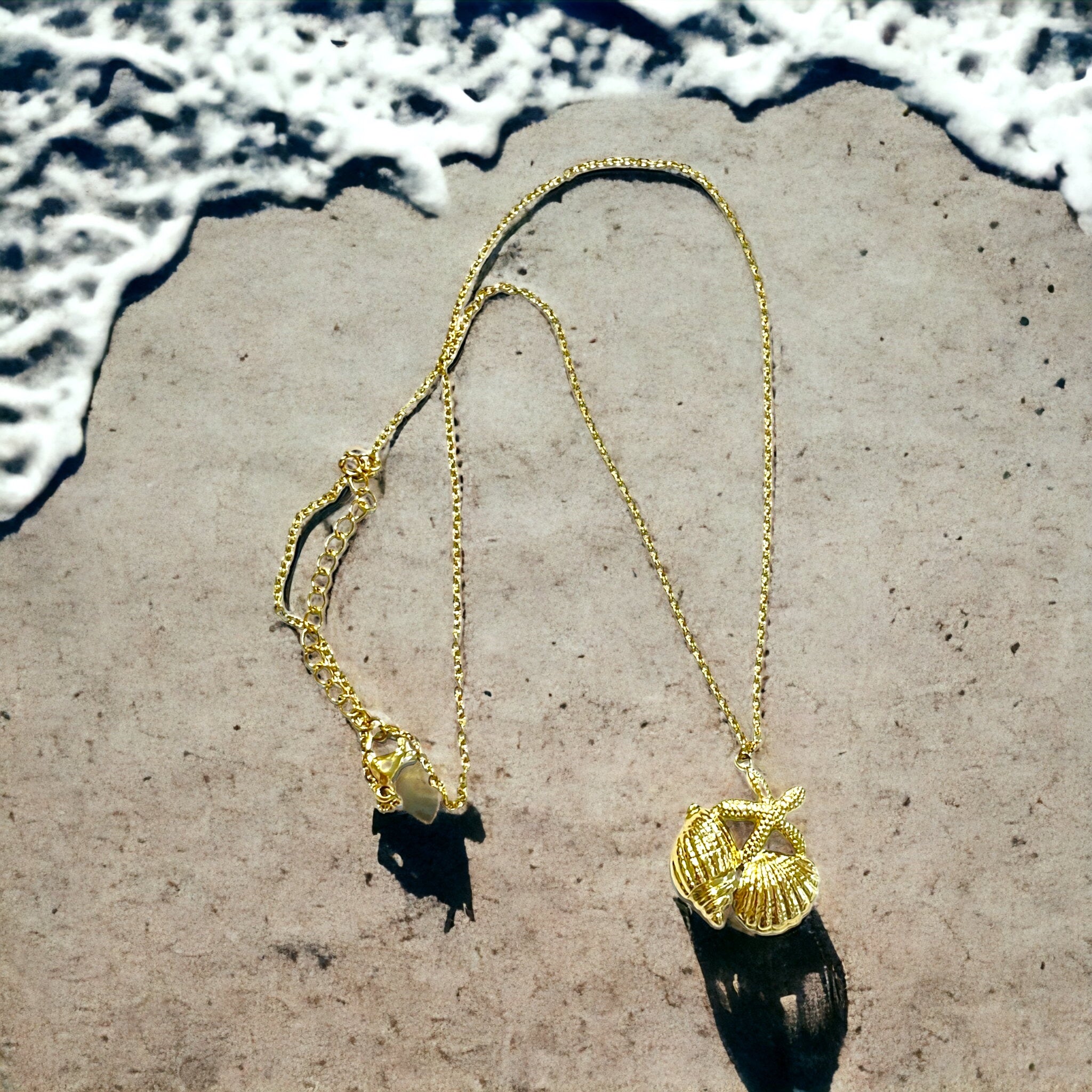Colgante con Estrella de mar, concha y caracola.