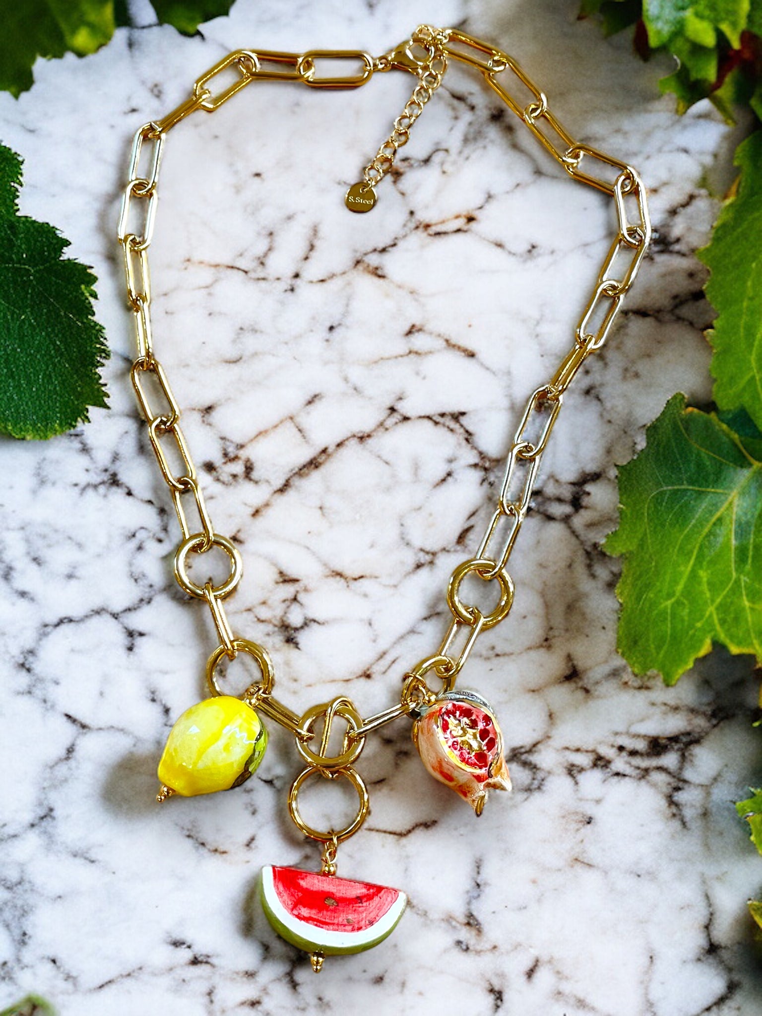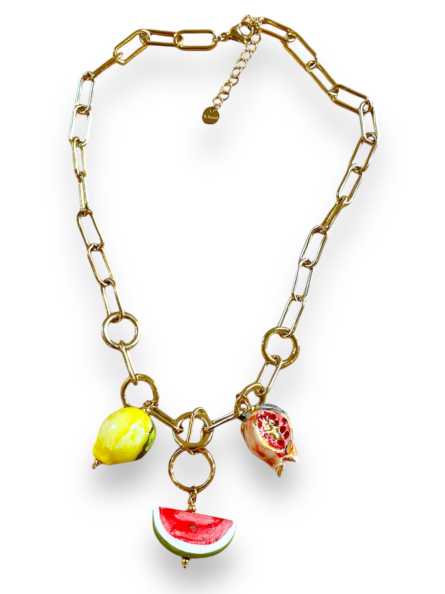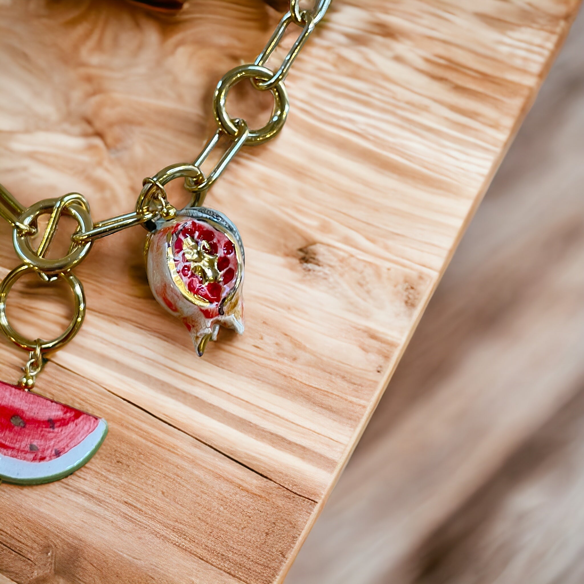 Colgantes en forma de granada, sandía y limón de cerámica de Castiglione.