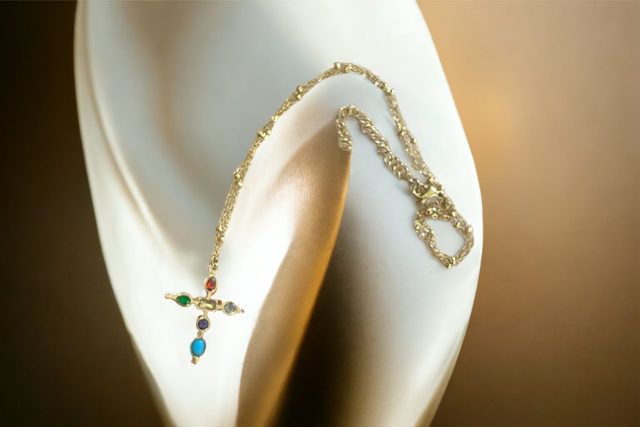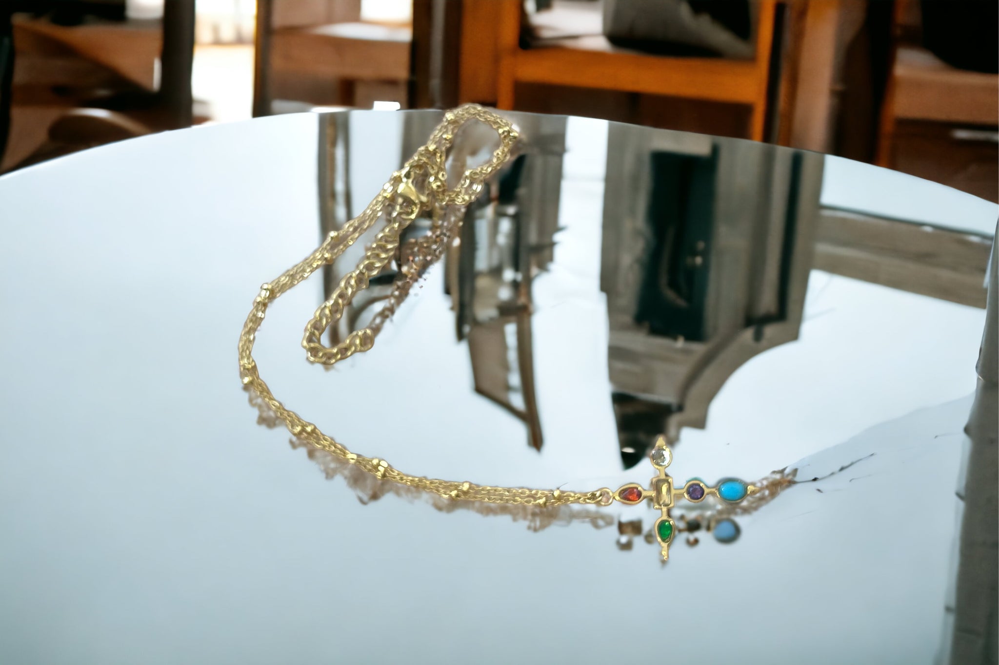 Cruz en acero inoxidable con piedras semipreciosas