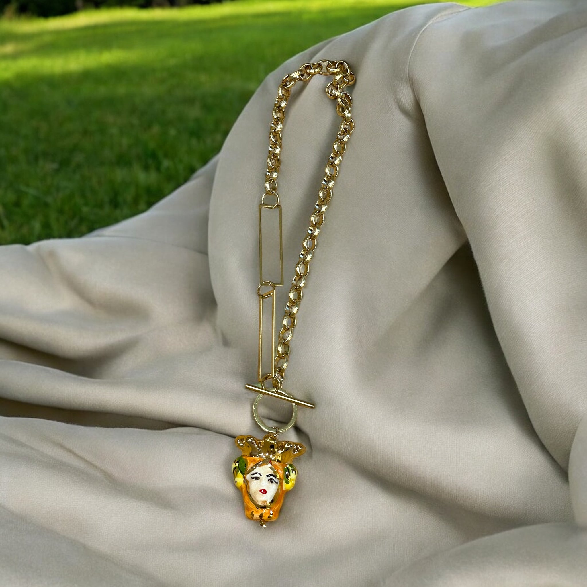 Gargantilla de acero inoxidable con colgante de cerámica siciliana