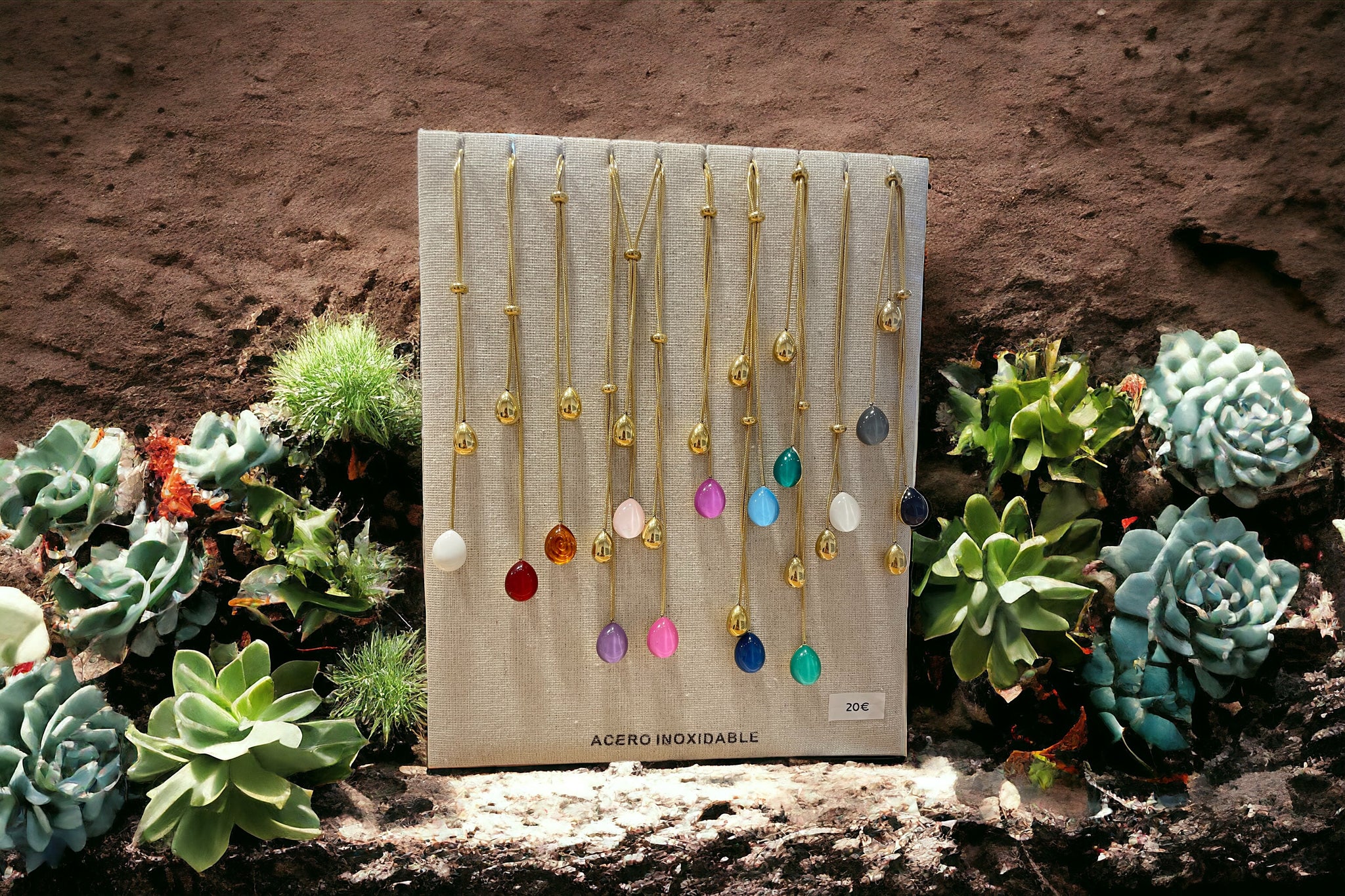 Colgante en forma de gota dorada y colgante en forma de gota con color. Disponible en varios colores.