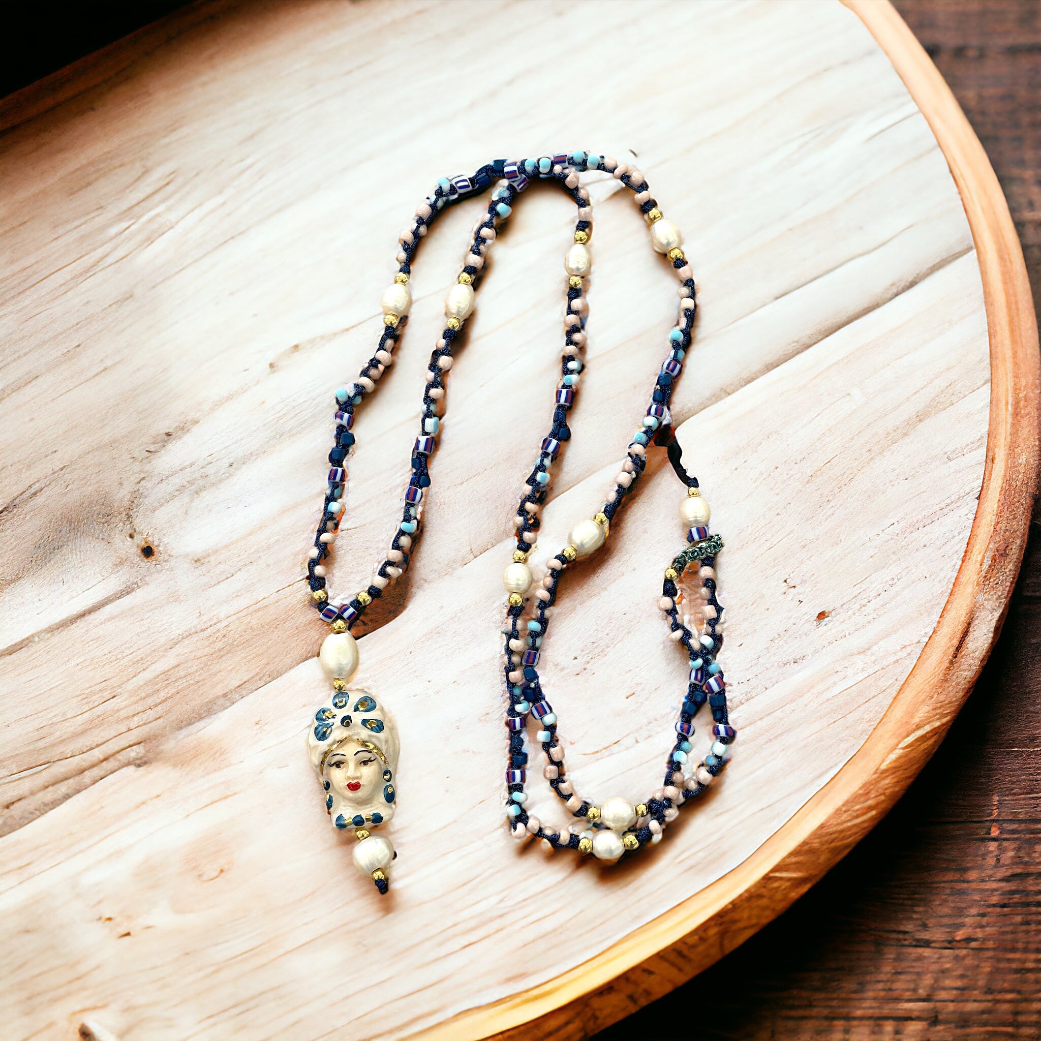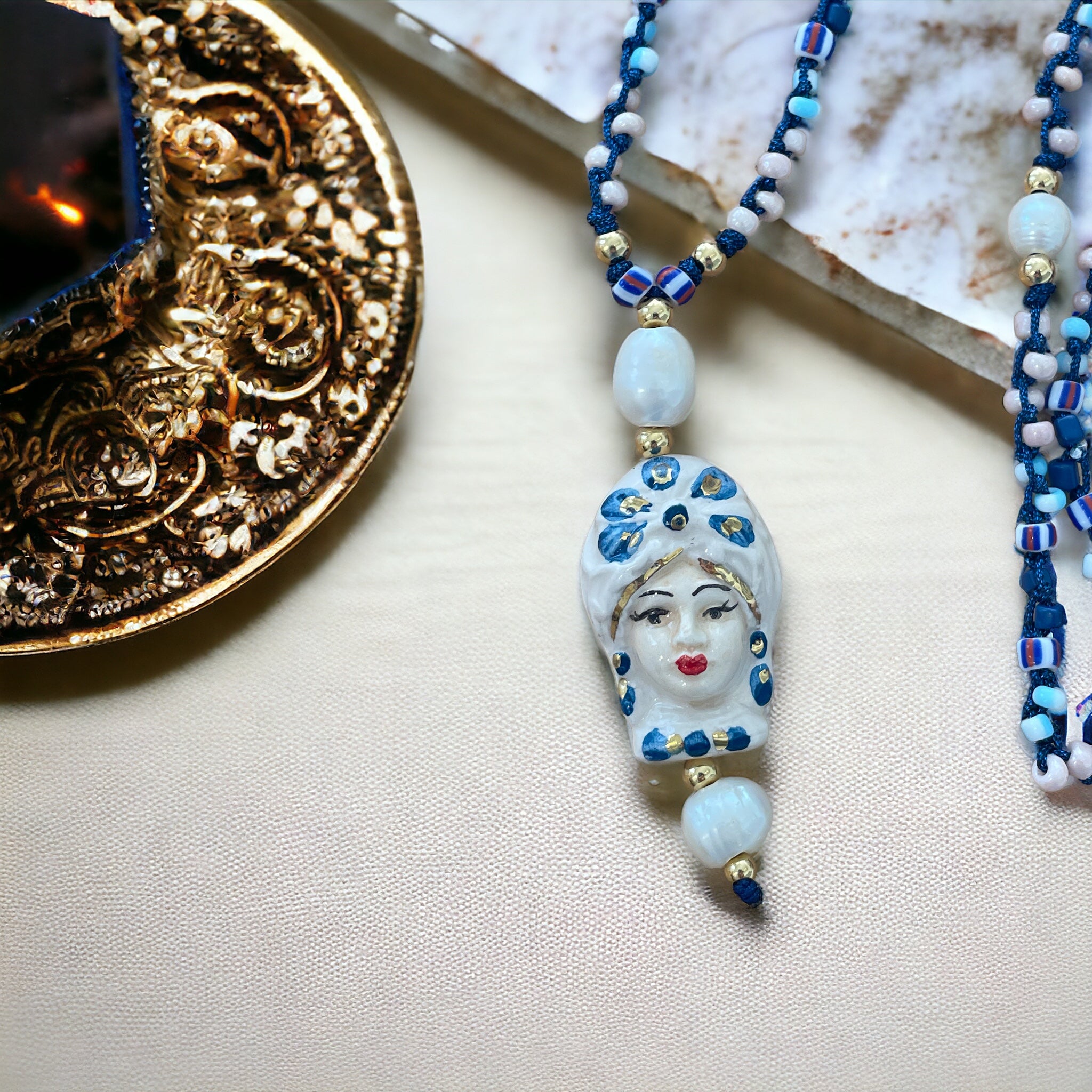 Colgante de cerámica italiana de Castiglione. Forma de mujer.