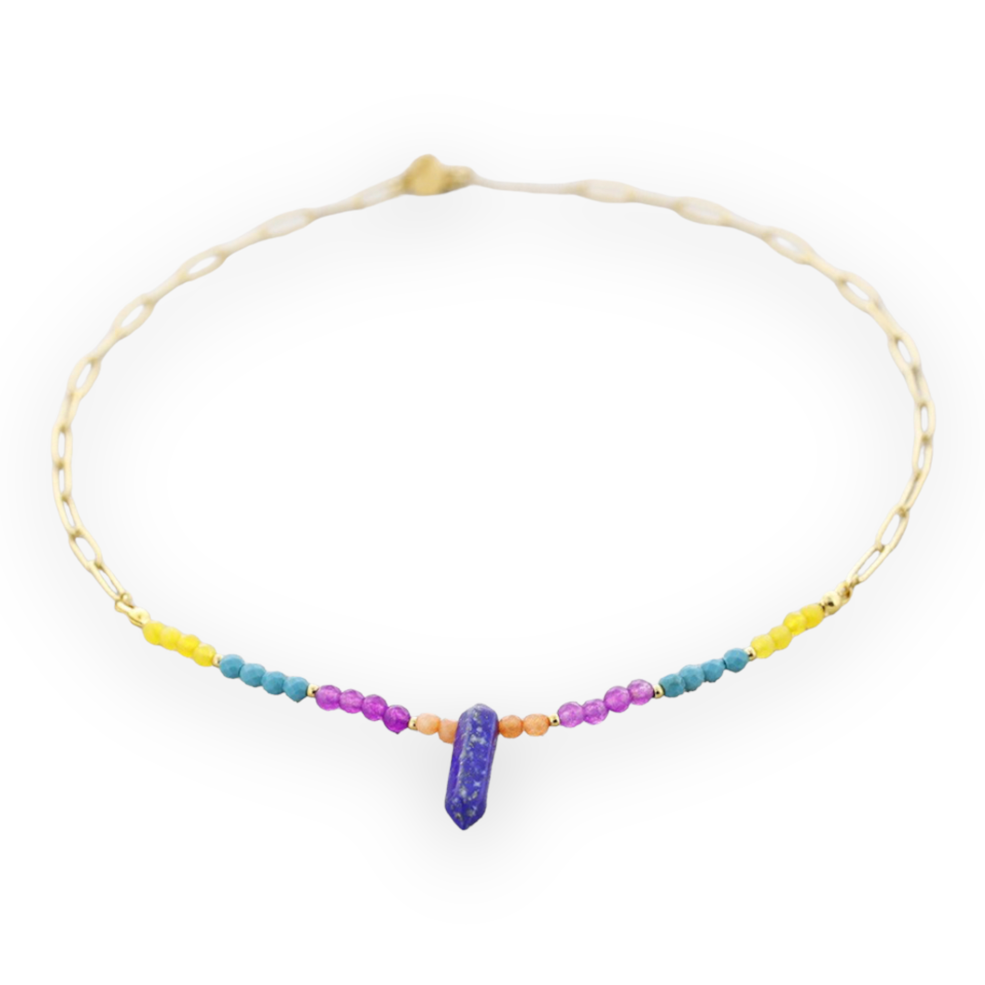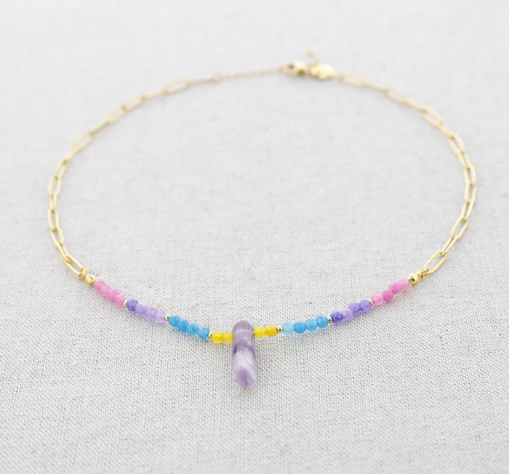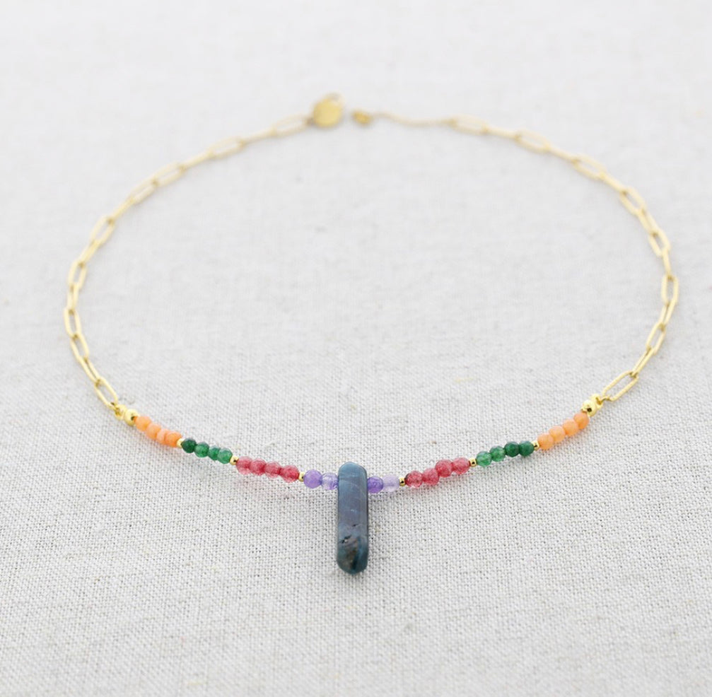 Gargantilla en acero inoxidable con piedras semipreciosas.