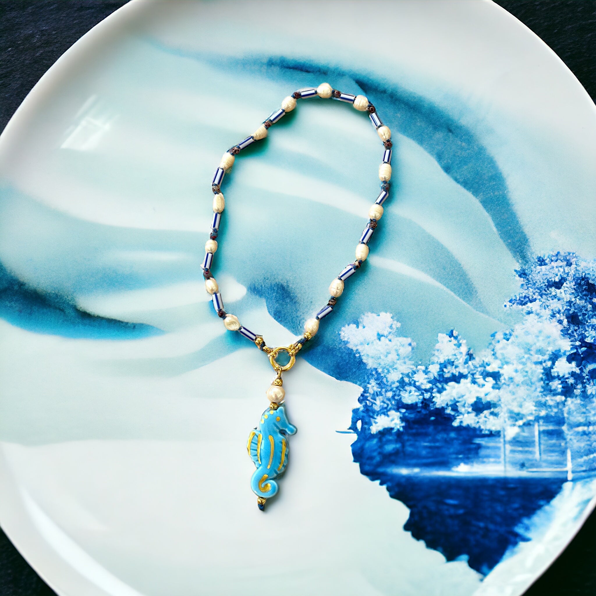Colgante de cerámica italiana de Castiglione, en forma de caballito de mar.