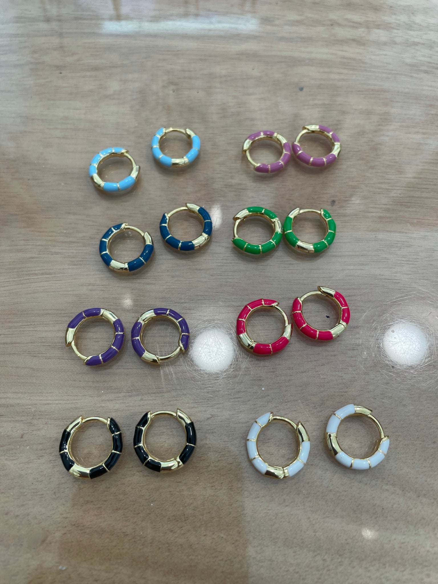 Aros en Plata de Ley Chapados en Oro con esmalte de colores.