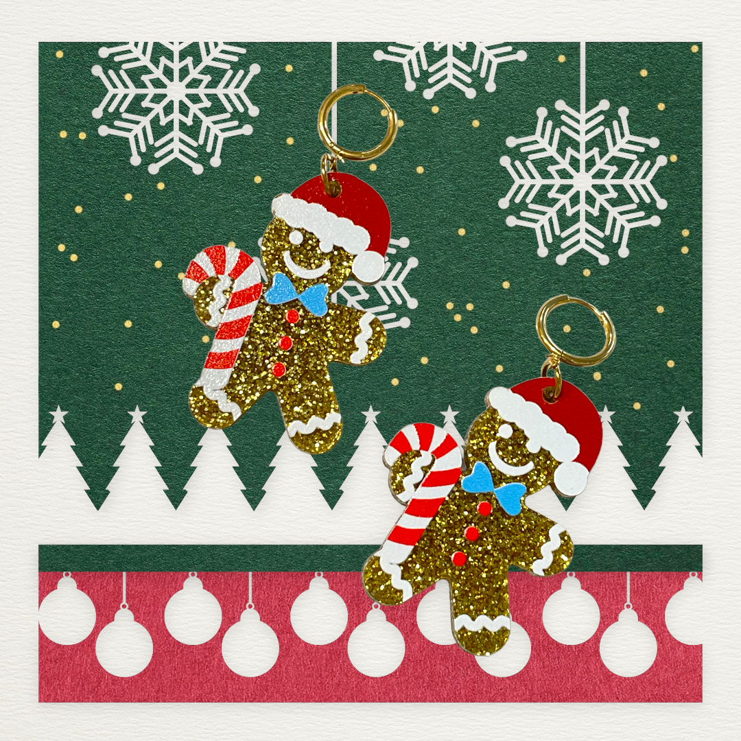 Colgante de resina en forma de galleta navideña. Largo de la galleta 4,5cm y 3 cm de ancho.