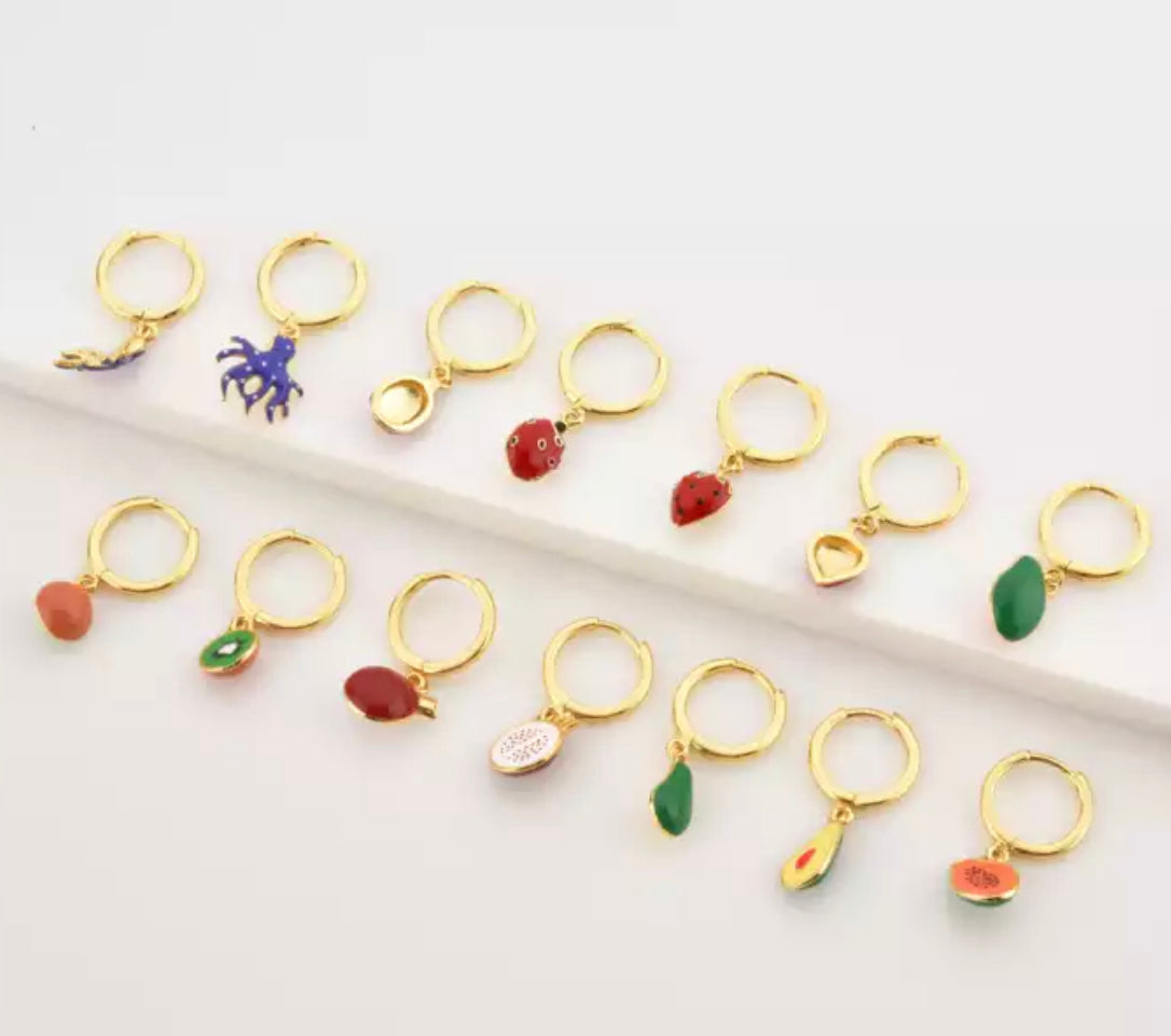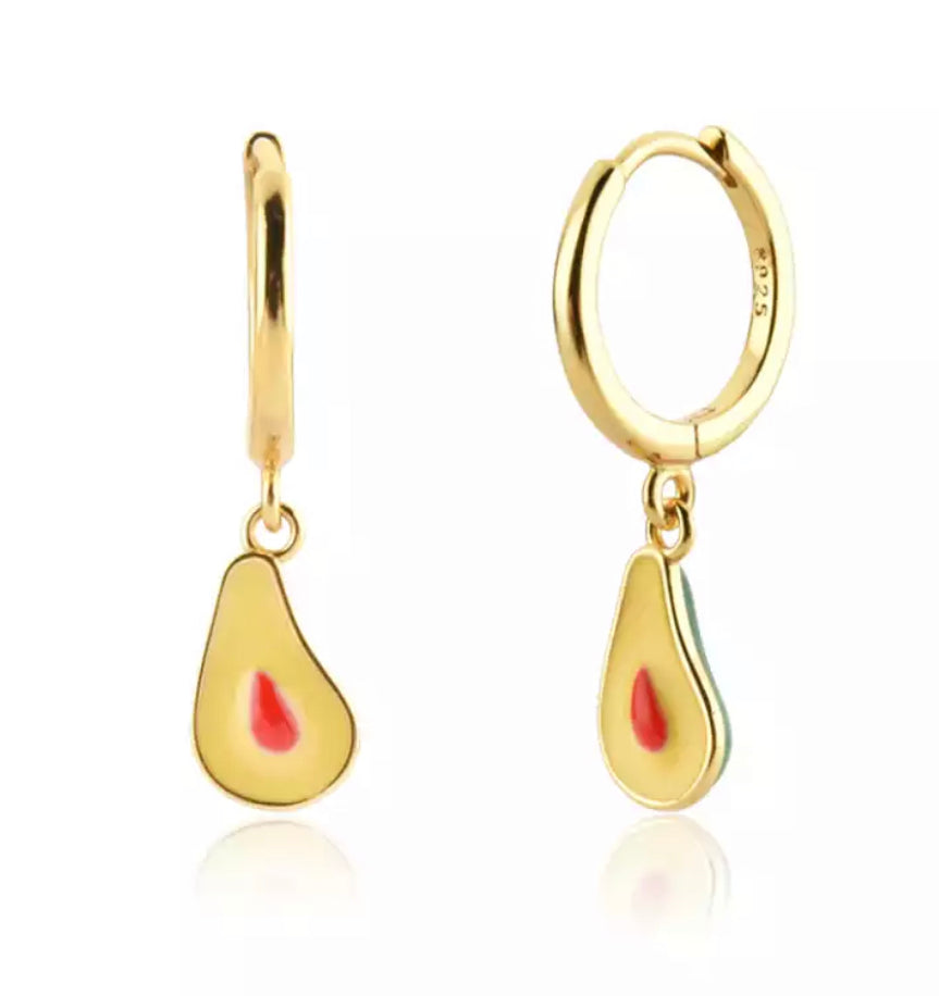 Aros de plata chapada en oro con un aguacate colgando. Ideales tanto para mayores como para niñas pequeñas.
