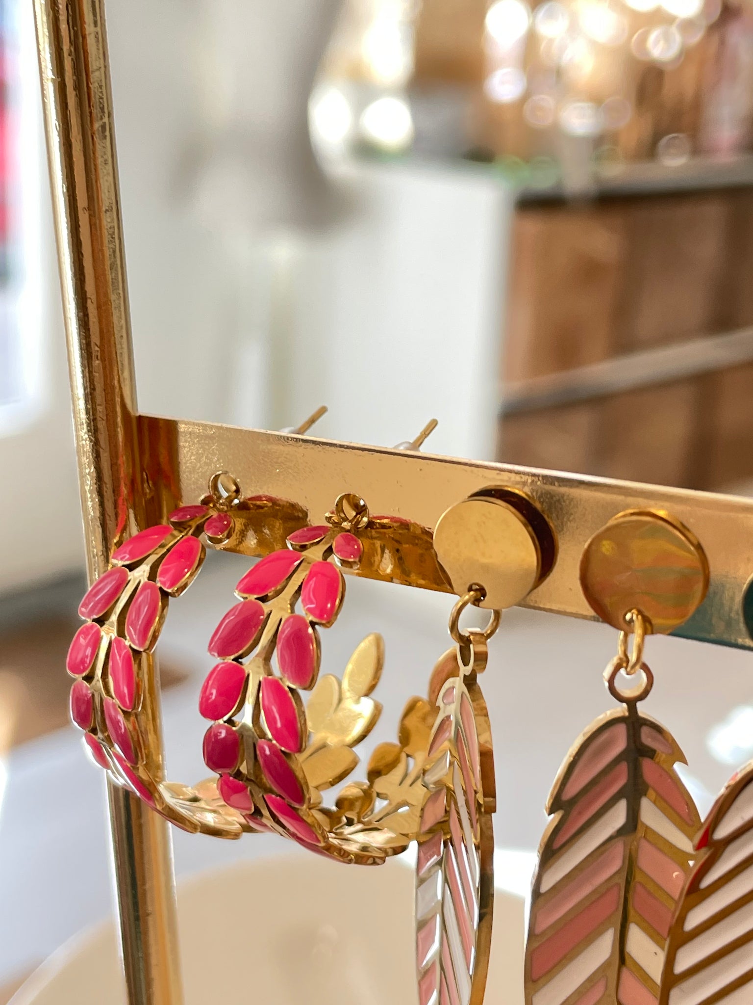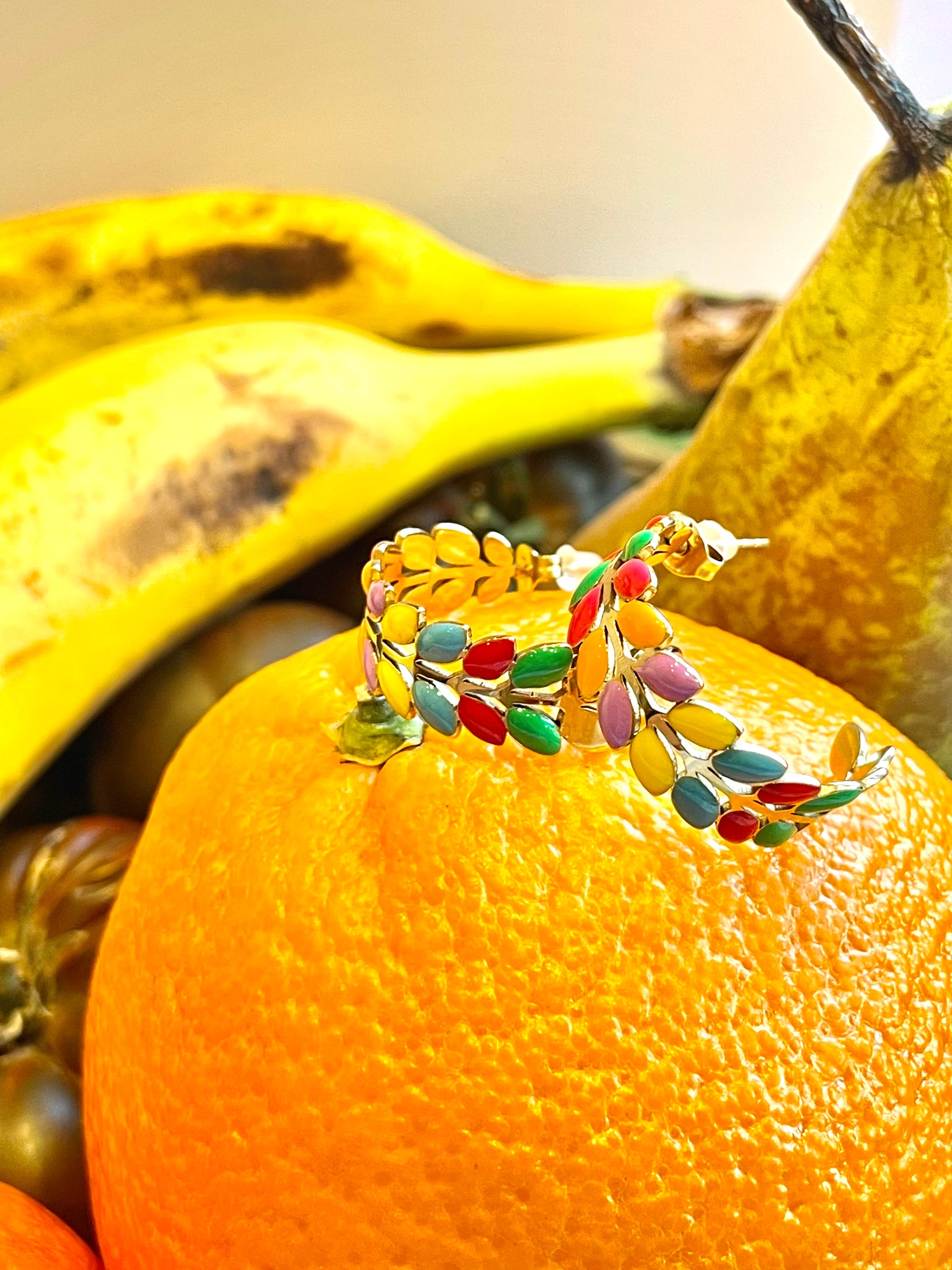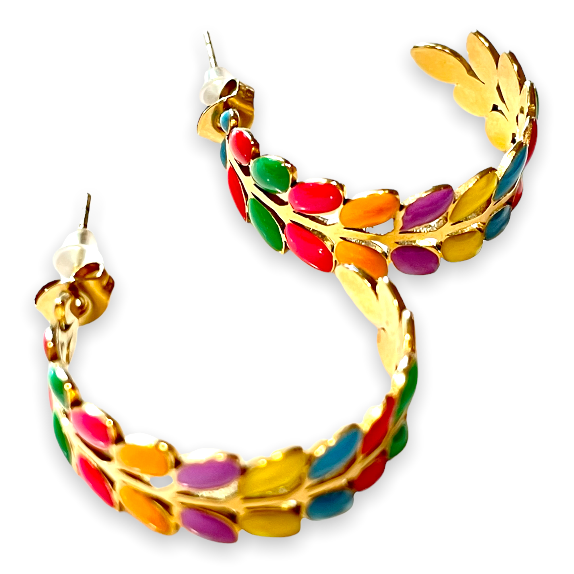 Aros en acero inoxidable y esmalte con forma de espiga.