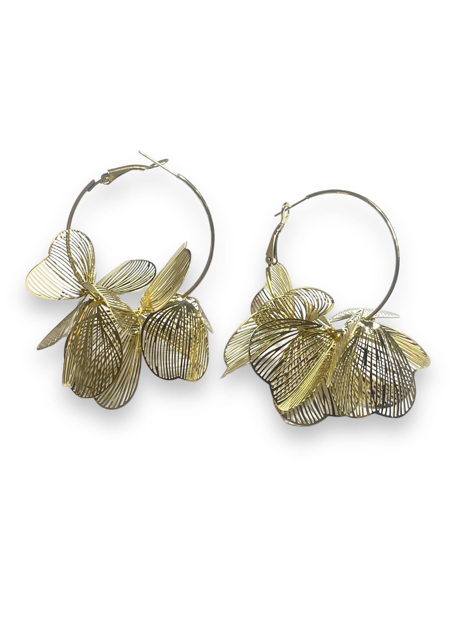 Aros en acero inoxidable de 4cm de diámetro con flores de filigrana. Súper ligeros y favorecedores.