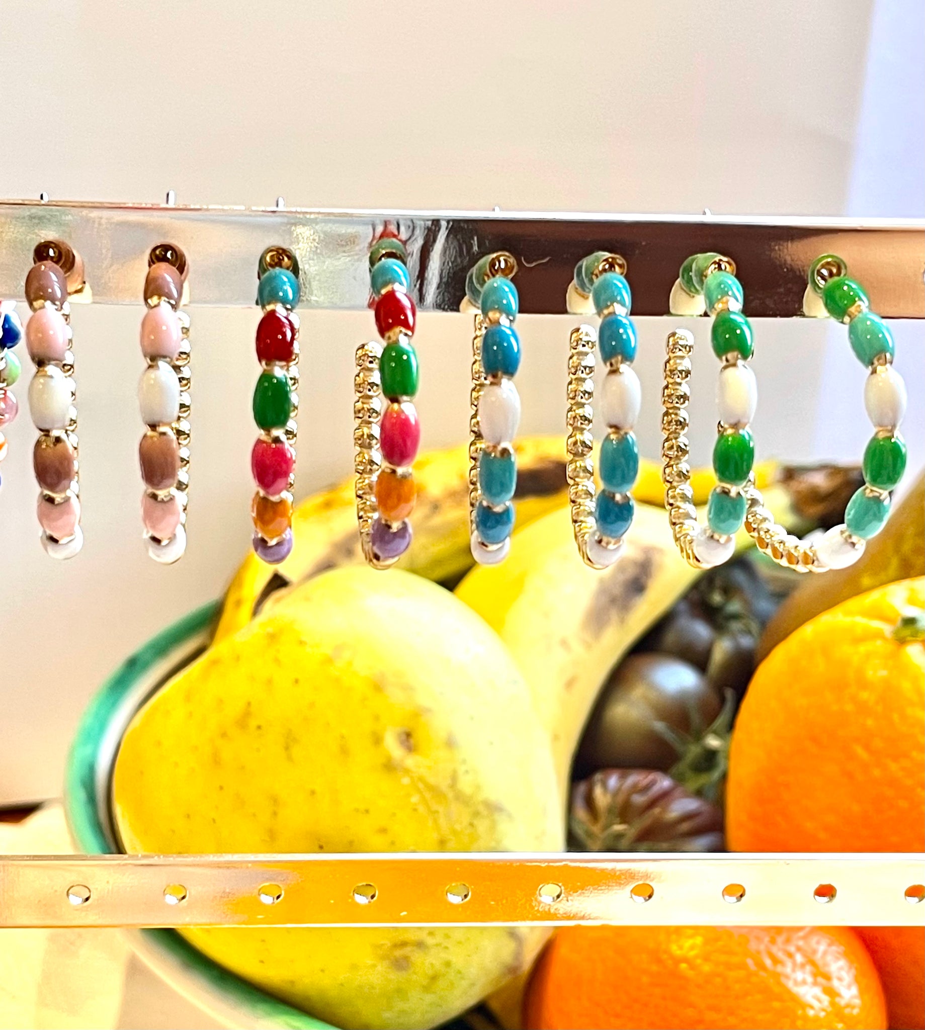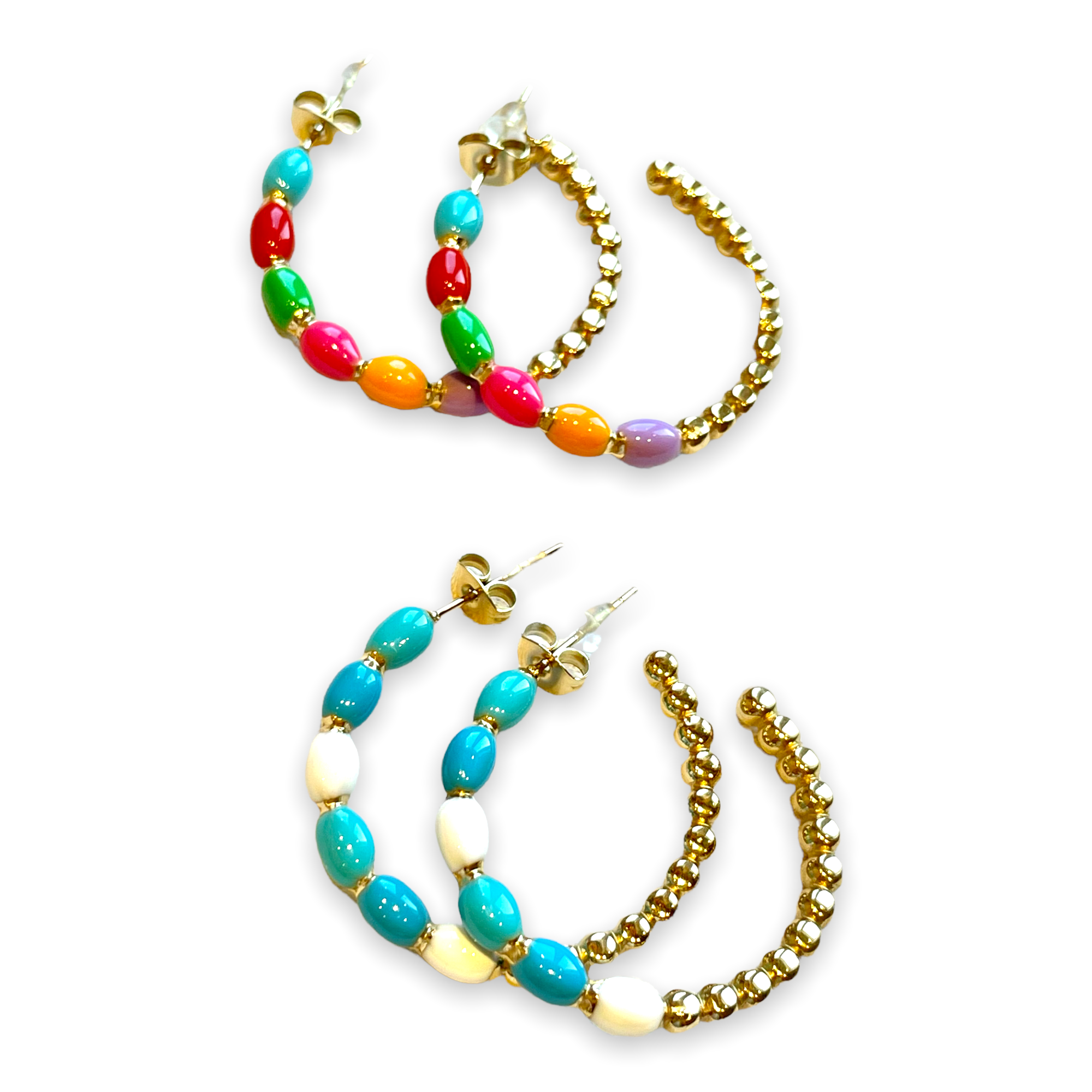 Aros en acero inoxidable dorados con esmalte.