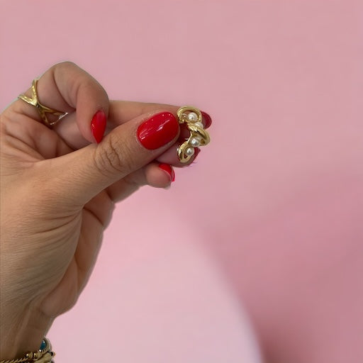 Aros en acero inoxidable dorados y perlas.