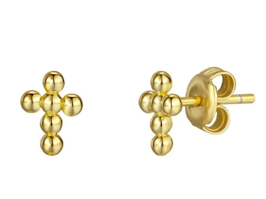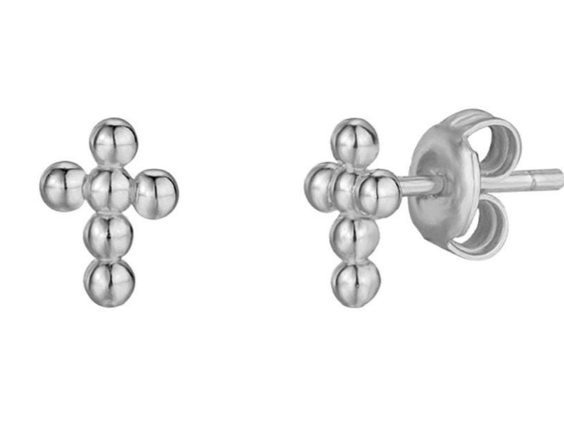 Forma de cruz con bolitas. Cierre a presión con tuerca.