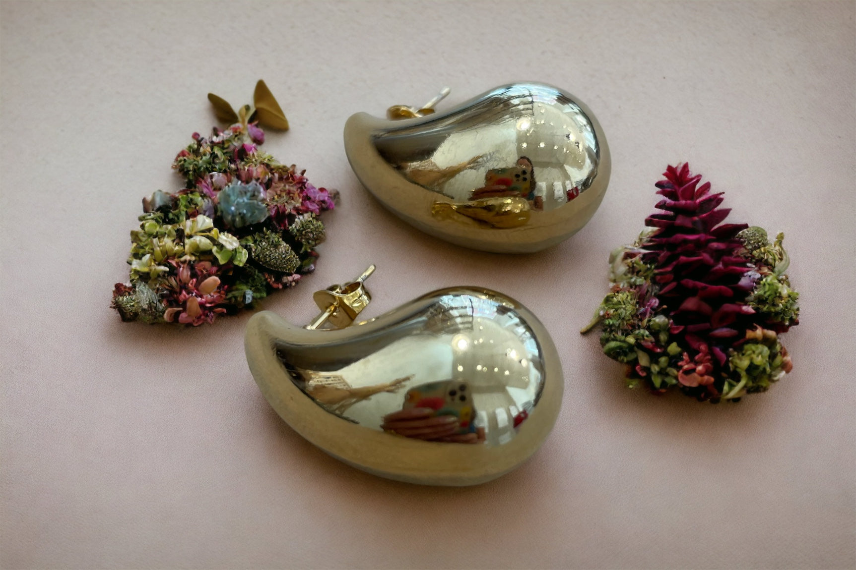 Pendiente en acero inoxidable dorado con tuerca.