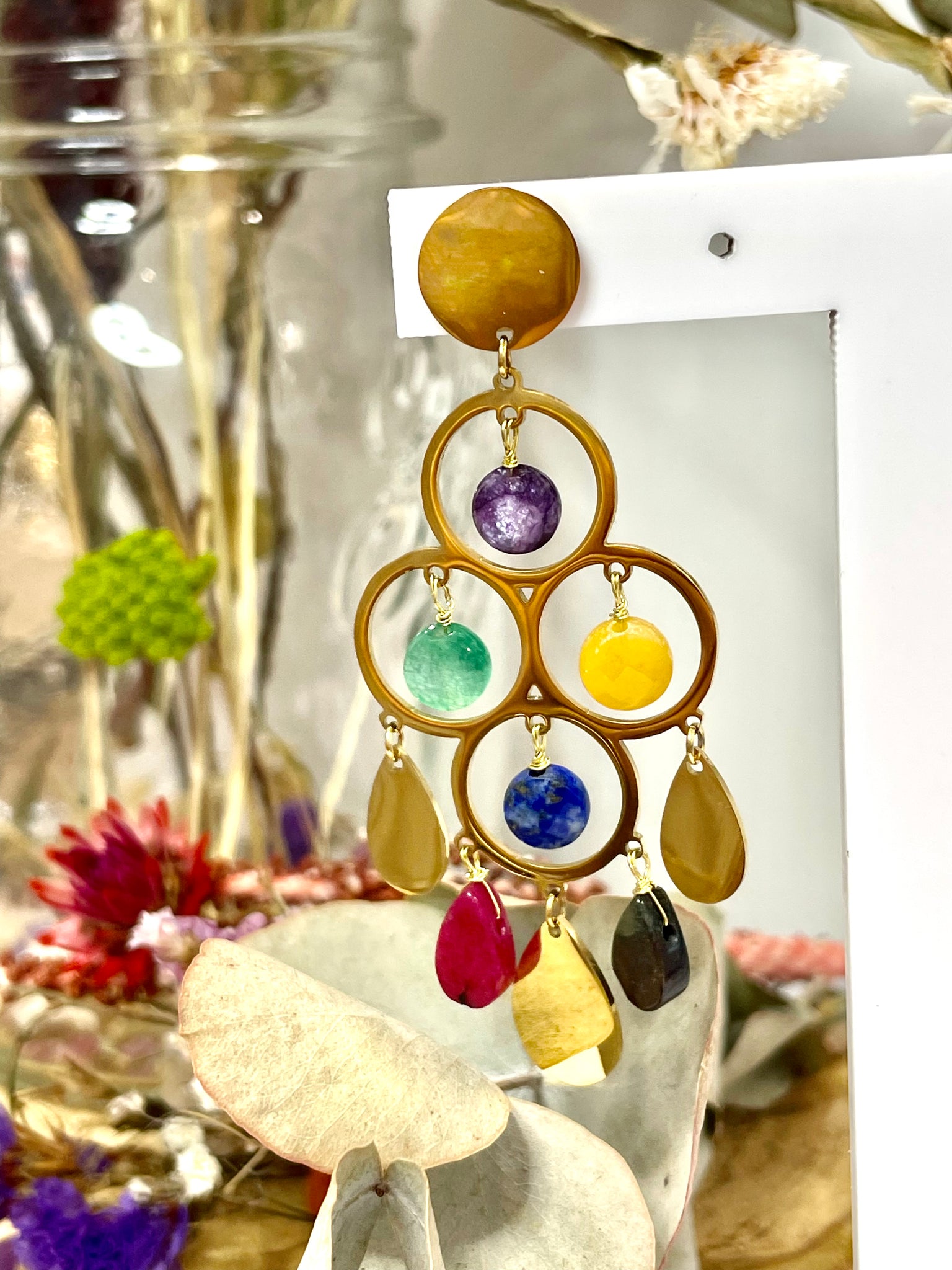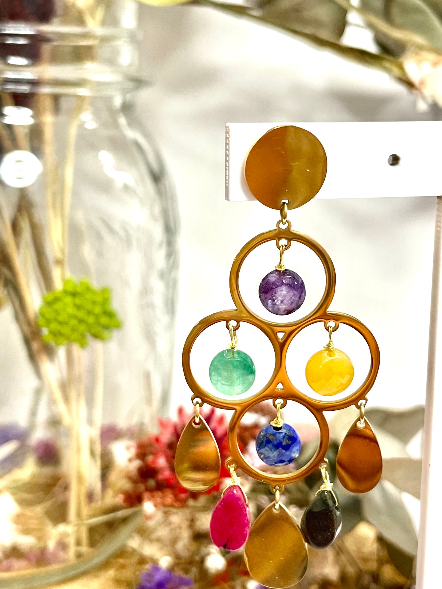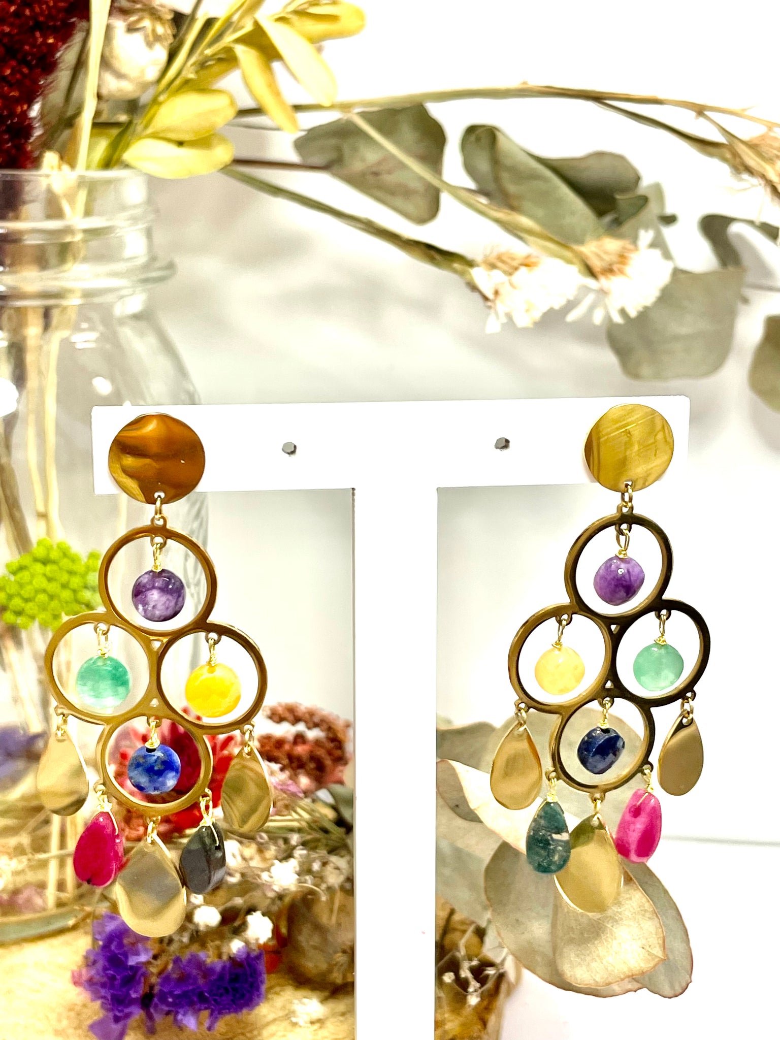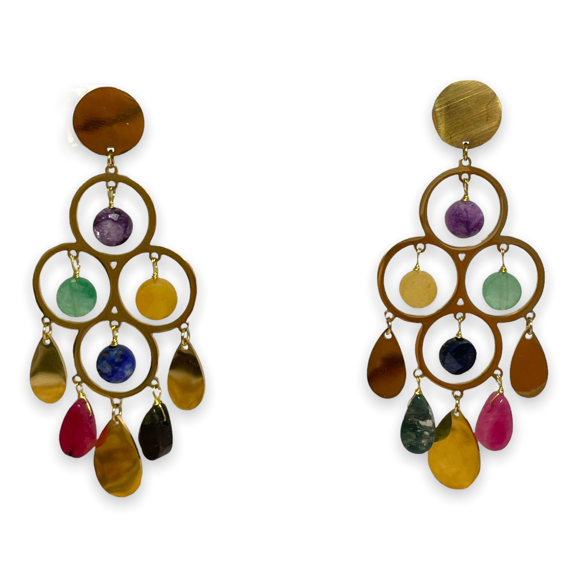 Pendientes en acero inoxidable dorado con piedras semipreciosas.