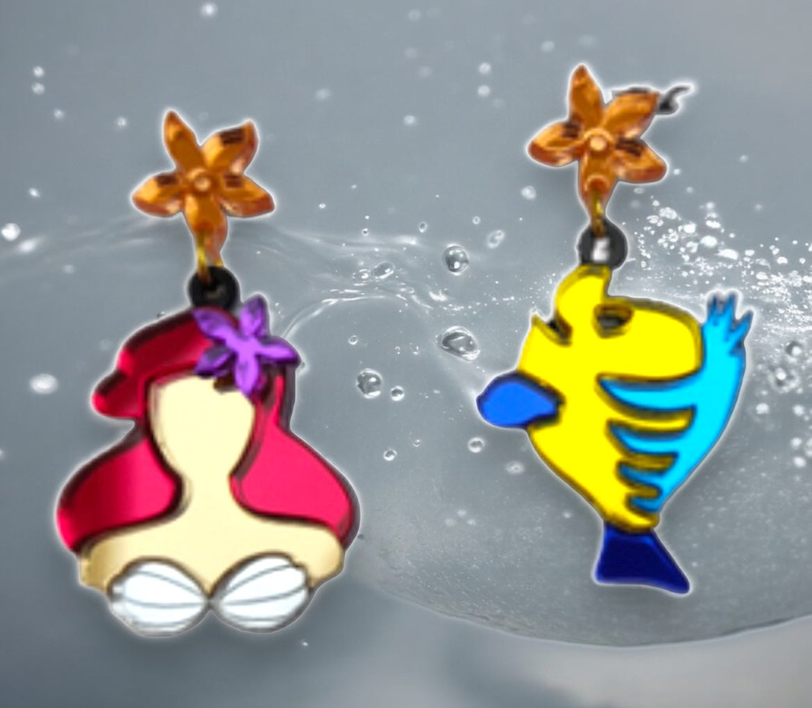 Pendiente metacrilato mini Sirenita , está elaborado en metacrilato espejo, en un tamaño de 4.2 cm aprox.