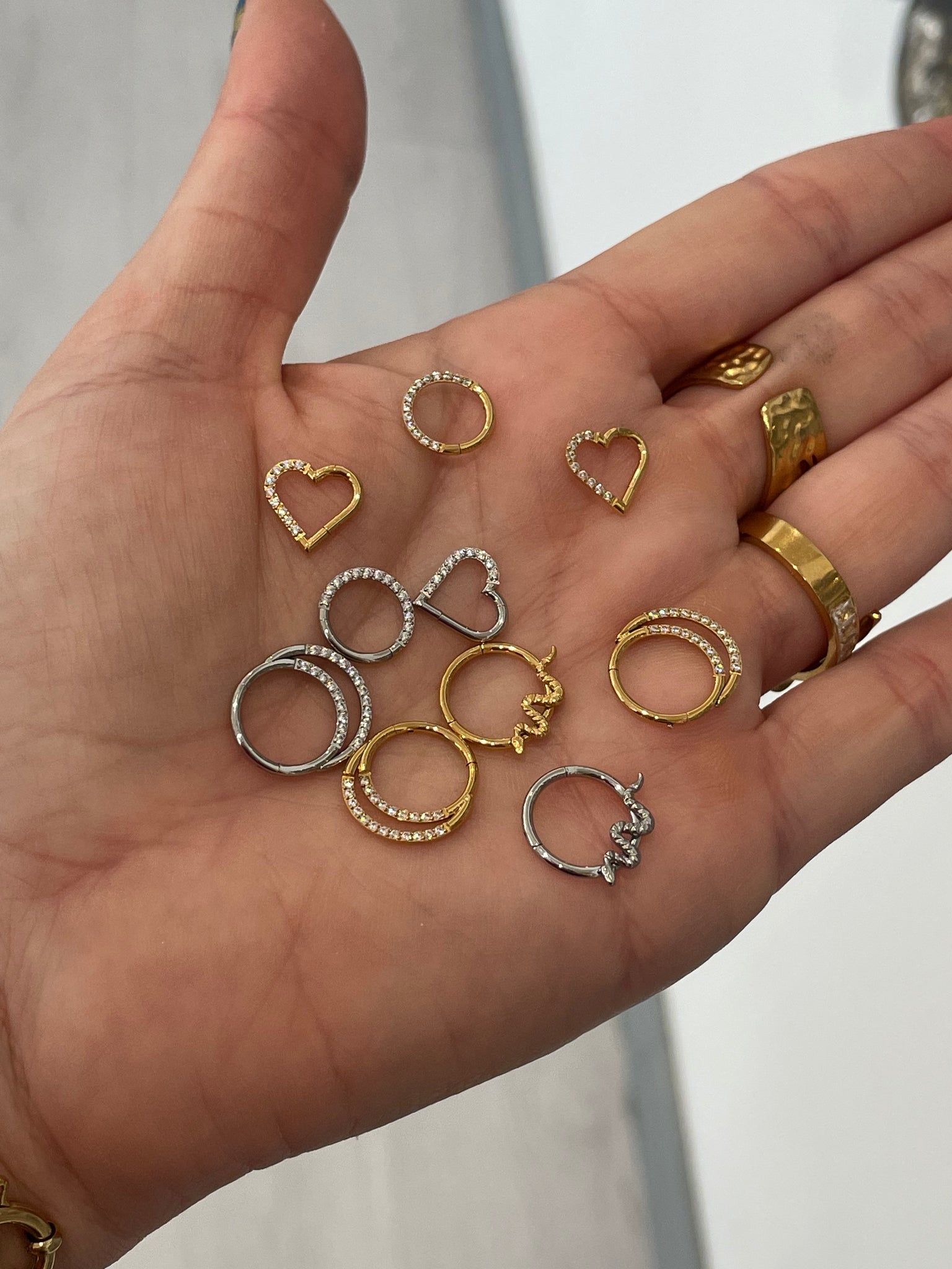 Piercing en acero inoxidable con forma de corazón y circonitas.