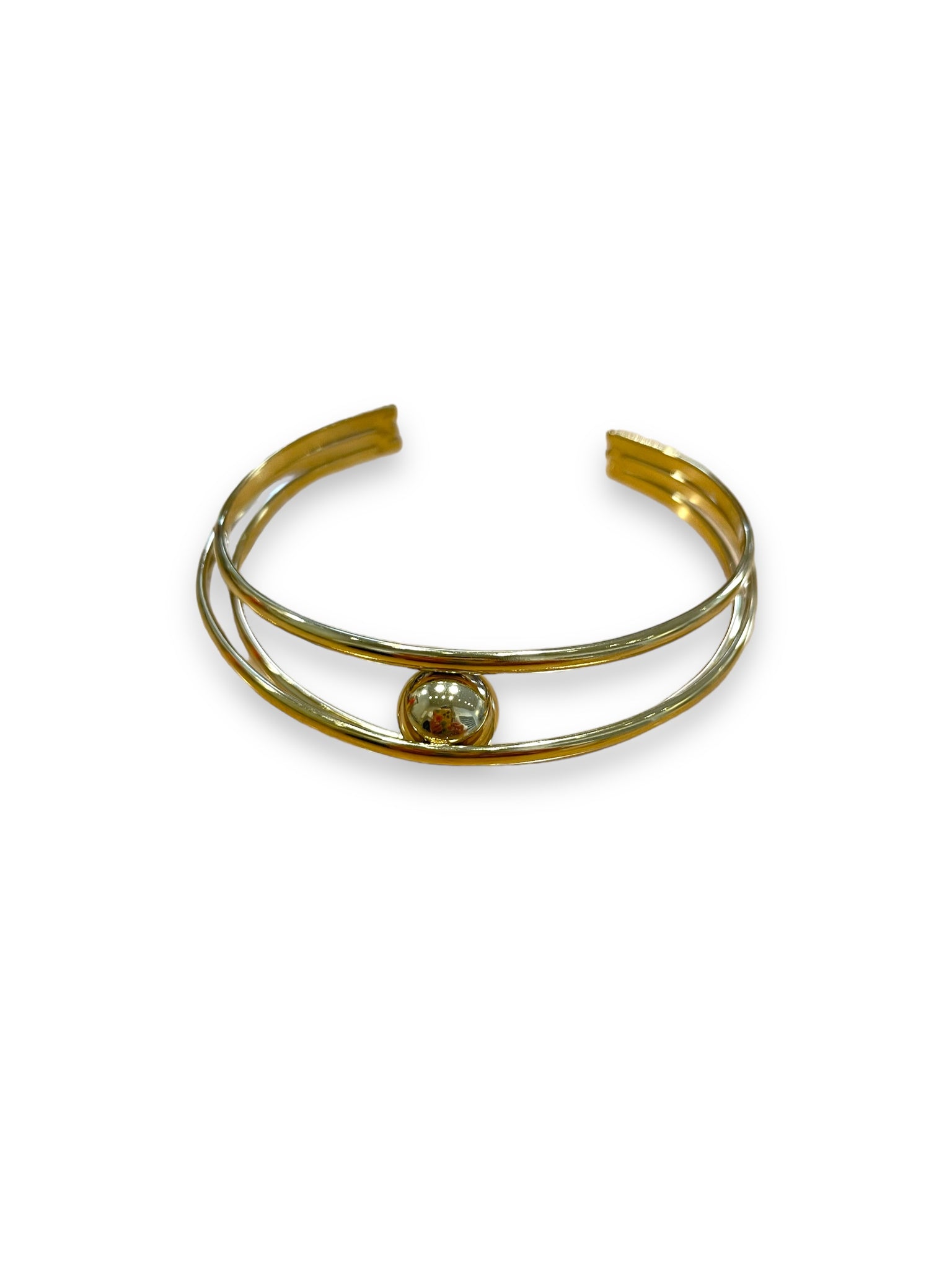 Pulsera rígida en acero inoxidable dorado. Ajustable.
